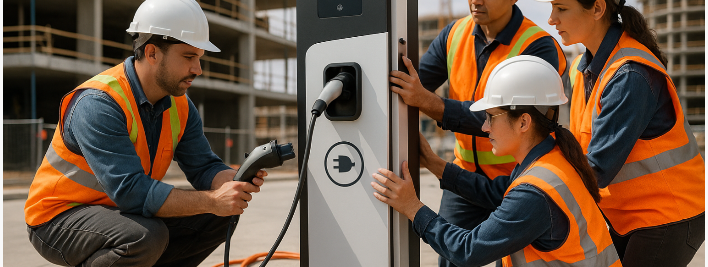 Installing the chargers, testing all systems, and bringing the charging station online to verify performance.